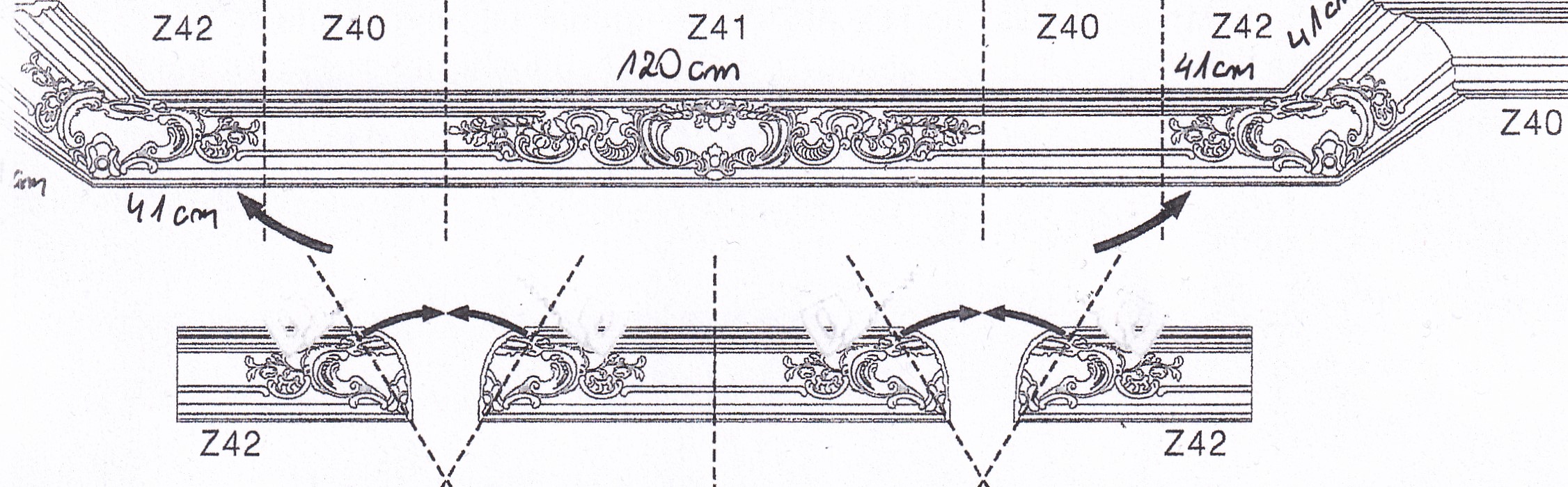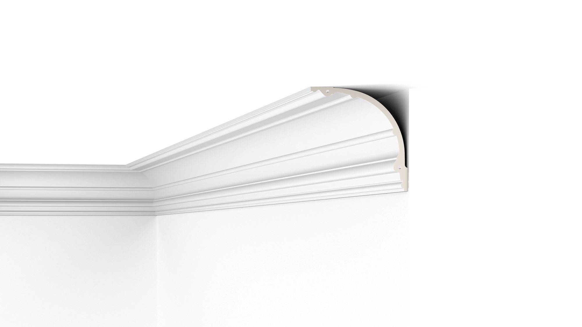Dekoracyjna, wysoka, klasyczna listwa przysufitowa, dedykowana do profili Z42 (profil narożnikowy) i Z41 (profil ornamentowy).