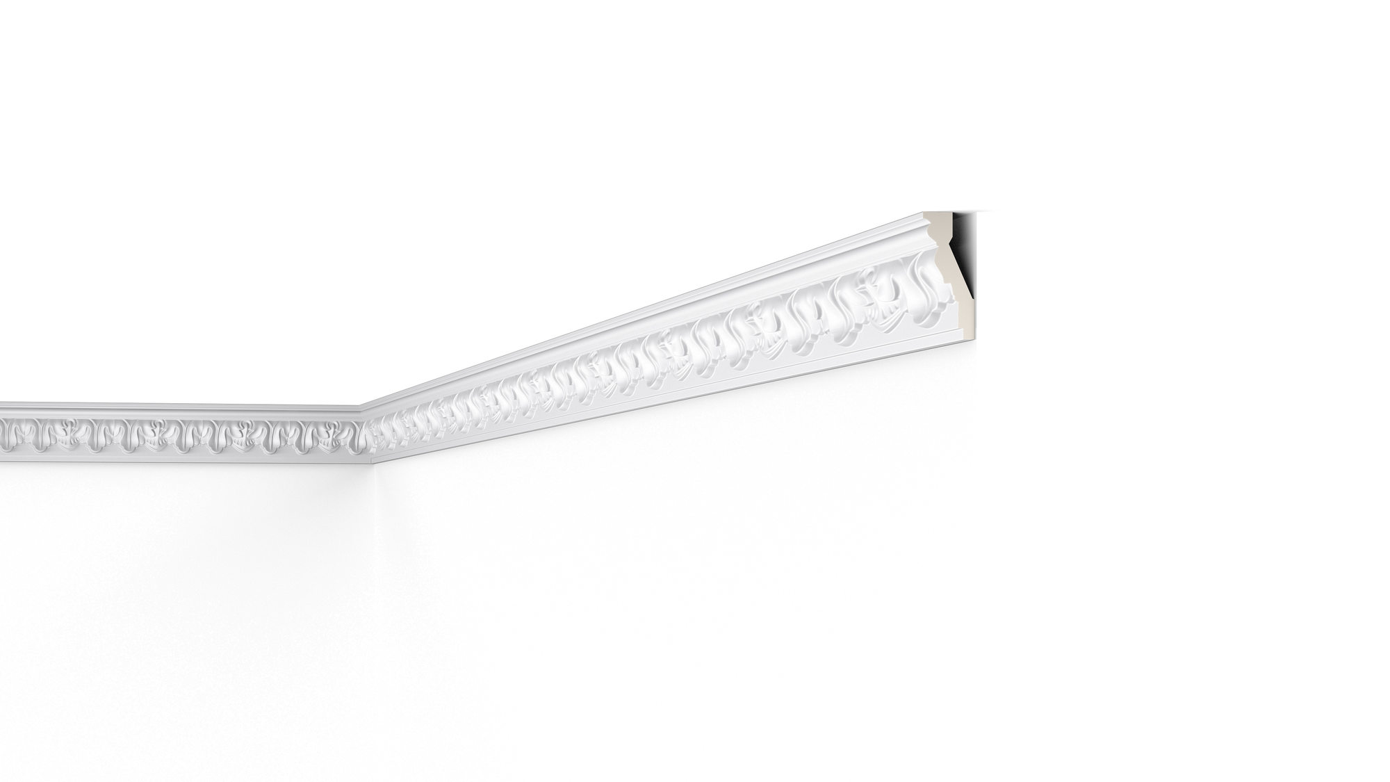 Delikatna, ponadczasowa listwa przysufitowa wykonana z wysokiej jakości materiału pozwoli dodać elegancji i charakteru zarówno klasycznym jak i nowoczesnym wnętrzom. Wykonana z dbałością o szczegóły, niezwykle łatwa w montażu pomoże ukryć drobne niedoskonałości na styku ścian i sufitu.