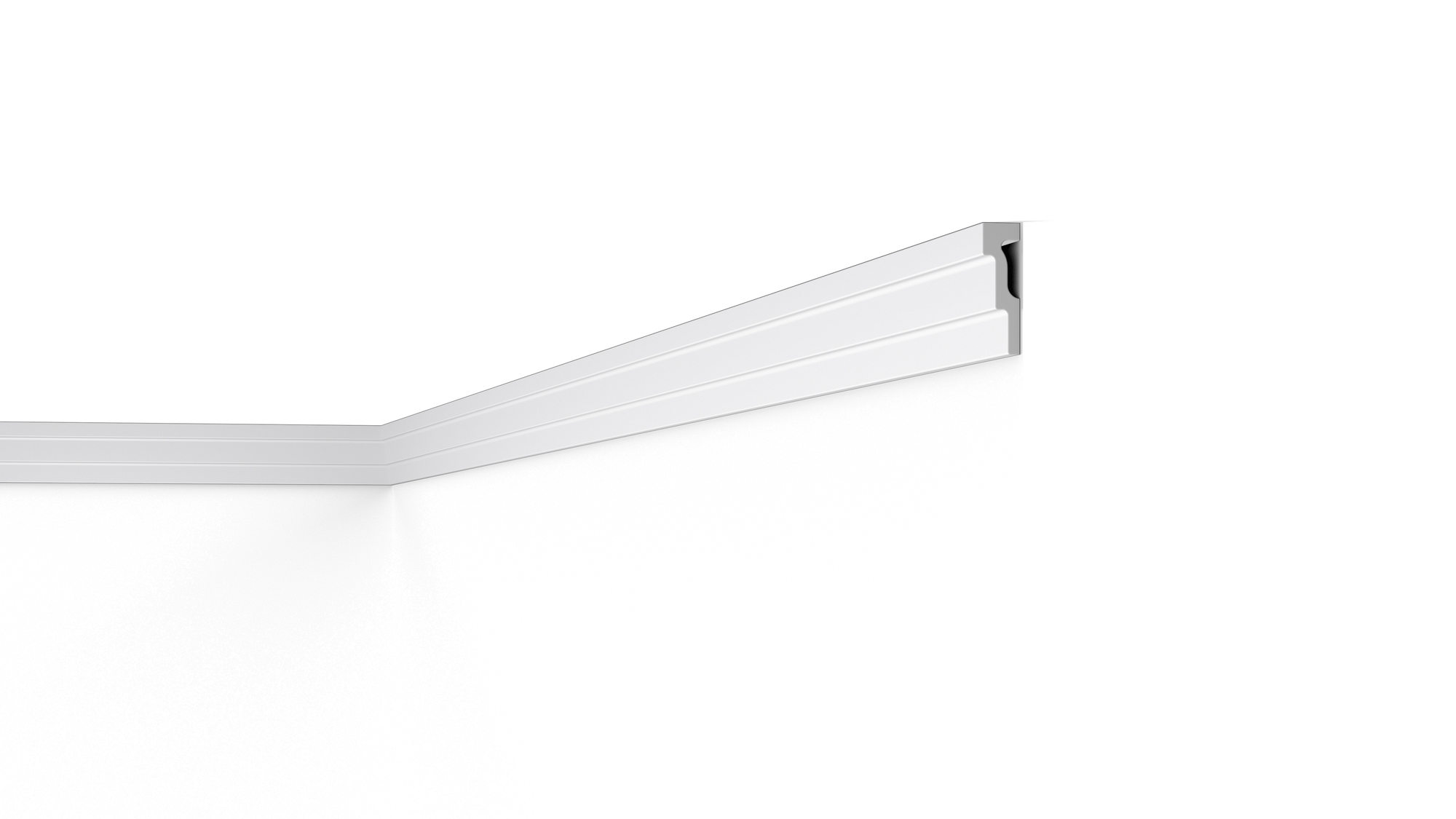 Miękki, nowoczesny gzyms o idealnie gładkiej powierzchni pozwoli niewielkim nakładem środków dodać charakteru każdemu wnętrzu. Listwa pozwoli ukryć drobne niedoskonałości na styku ściany i sufitu. Profil może być zastosowany równie jako maskownica szyny karniszowej.