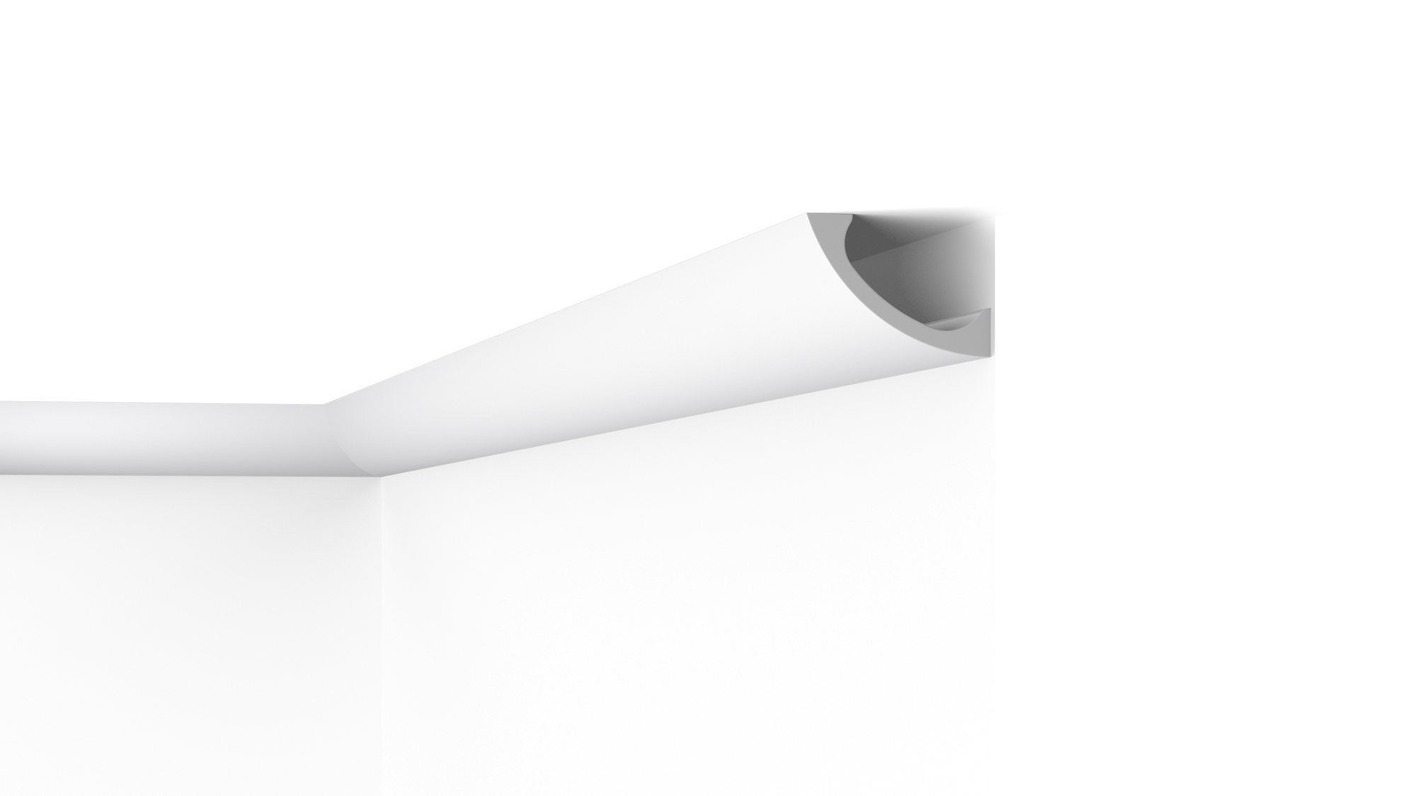 Dekoracyjna listwa przysufitowa przeznaczona do zastosowania jako element montażu lub ukierunkowania oświetlenia LED.