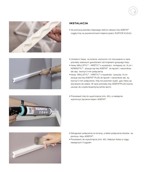 W rzeczywistości, montaż sztukaterii nie jest tak trudny, jak się wydaje. Wystarczą odpowiednie narzędzia (do twardszych materiałów przyda się piła), klej i dobre chęci. Poniżej instrukcja montażu listew z naszego katalogu technicznego.